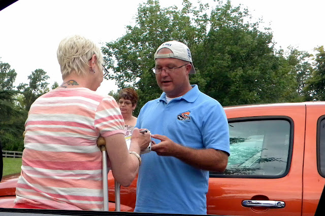 As it was time to leave we realized that Jane had locked her keys in the car! This is her speaking with the locksmith!
