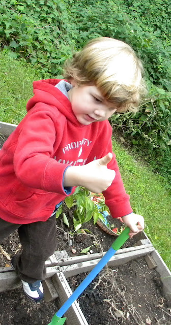 Gabriel had a blast digging and Bastian loved looking for bugs!