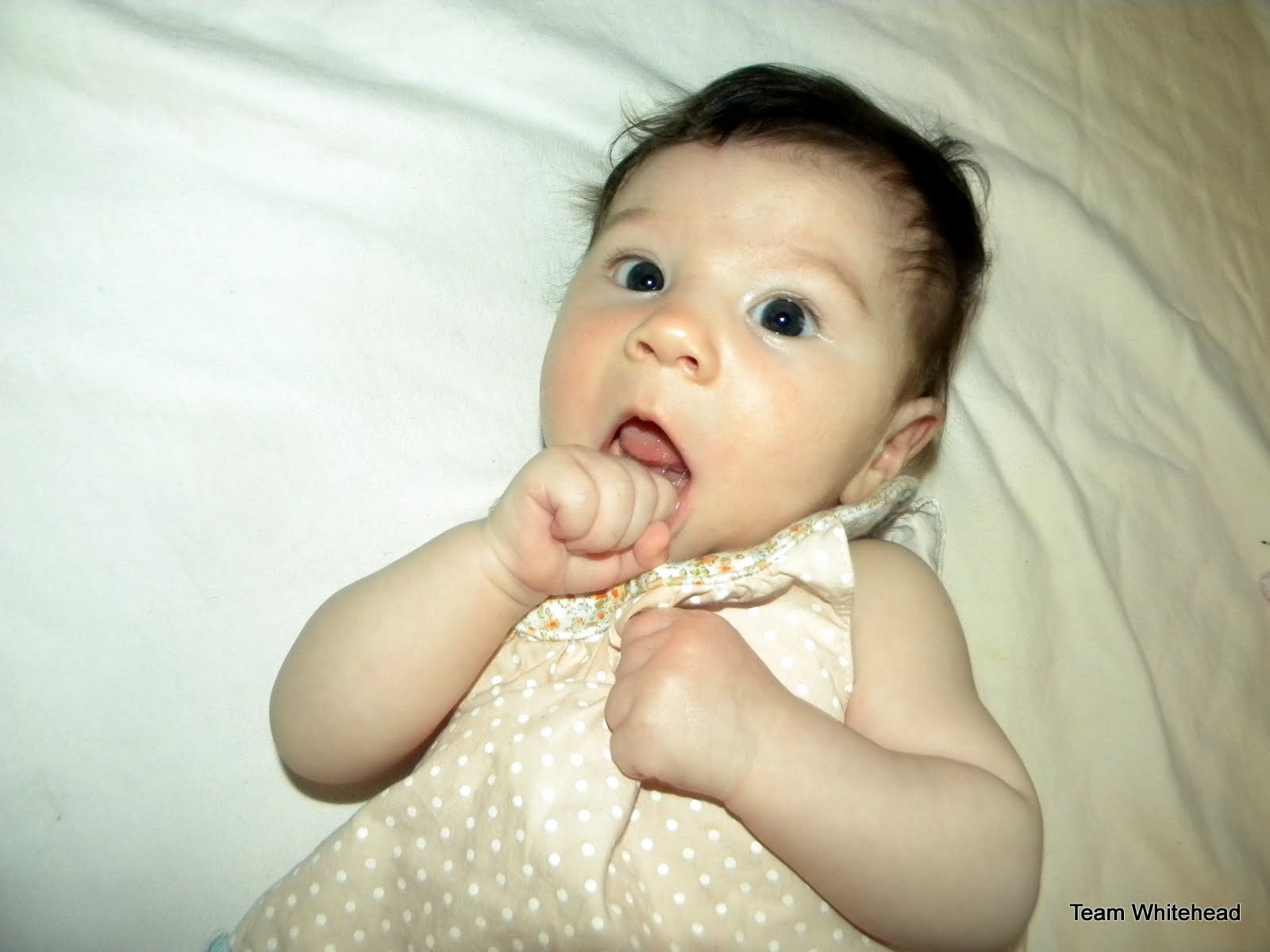 She was born in the 50th percentile for her weight, but has since dropped to 25%. Her last few visits have shown her gaining roughly .25 oz per day and she should still be gaining 1 oz per day. One two week period she actually lost weight! She just broke 14lbs! It is crazy to us to have such a small baby! The boys were both 18+lbs at this age!